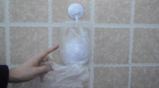 Đầu tiên, bạn gập đôi túi ni lông lại, móc túi ni lông trên và dưới vào nhau rồi ấn chặt từng túi ni lông đã phân loại vào hộp. Cách chế biến hộp tương tự như hộp khăn giấy. Sau khi treo lên tường, bạn chỉ cần rút túi ni lông ở phía dưới ra.
