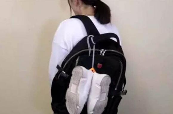 Lúc này, "cái đuôi nhỏ" phía sau giày phát huy tác dụng, có thể luồn qua dây giày và treo vào ba lô, giúp không làm bẩn túi và rất tiện lợi khi mang theo.