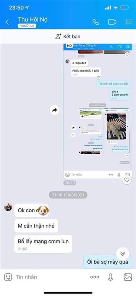 Liên quan tới những tin nhắn lạ sau khi tài khoản K.O bỗng nhận 45 triệu đồng, người tự nhận là bên công ty tài chính đã không ngừng có những lời lẽ hăm doạ sẽ làm K.O bị thương. Thậm chí, đối tượng còn gửi kèm cả hình ảnh "hàng nóng" để uy hiếp tới tính mạng của cô.
