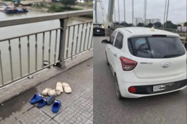 Những đôi dép và ô tô để lại trên cầu khiến nhiều người lo lắng.