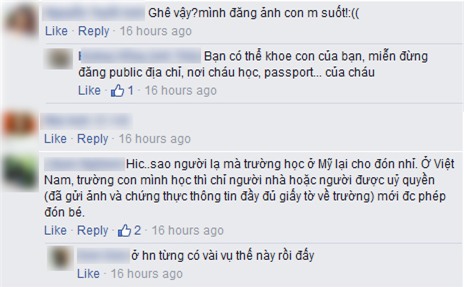 Một vài bình luận cho rằng, chỉ cần hạn chế kết bạn tràn lan, chia sẻ ảnh cá nhân ở chế độ bạn bè, không công khai, là đã giảm một phần hiểm họa có thể xảy ra cho con em mình.