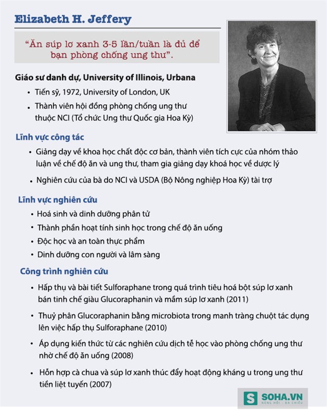 Bà cho biết “thường người ta hay nói về tác dụng của súp lơ xanh trong việc phòng chống một số loại ung thư, nhưng chưa ai nghiên cứu về tác dụng của loại rau này đối với ung thư gan”.