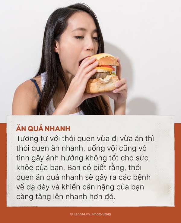 Ăn quá nhanh, vừa đi vừa ăn, bỏ bữa sáng... đang là một trong những thói quen ăn uống có hại cho sức khỏe của bạn đấy.