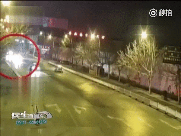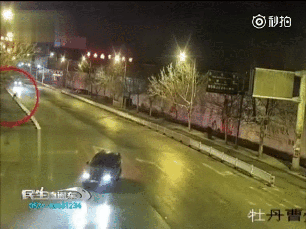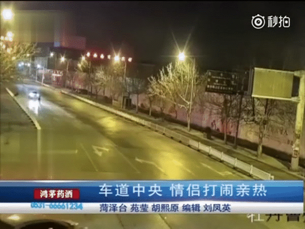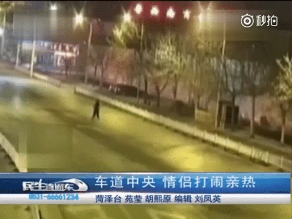 Vào khoảng 3h30' sáng, khi đường phố vắng người qua lại, một cặp tình nhân trẻ tuổi ở thị trấn Hà Trạch, tỉnh Sơn Đông, Trung Quốc đã rủ nhau trèo qua lan can chắn đường rồi ngông nghênh đi lại giữa những chiếc xe đang hối hả lao đi trong đêm.