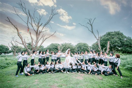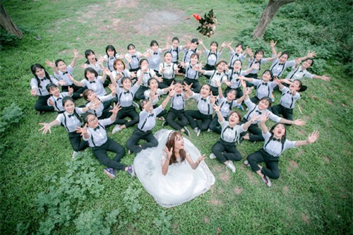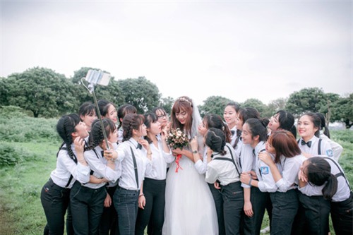 Thời gian gần đây dân mạng ấn tượng với nhiều bộ ảnh kỷ yếu và ngày hôm qua lại ngất lịm với hình ảnh cô dâu xinh đẹp bị 37 chú rể bao quanh. Thế nhưng không ai ngờ rằng, một cô dâu e lệ, nhan sắc hờn ghen kia lại là một... chàng trai.