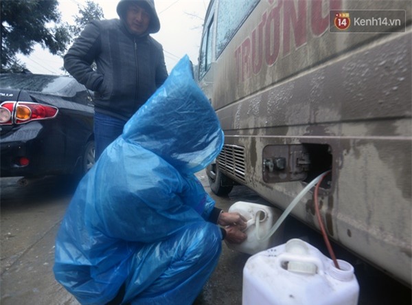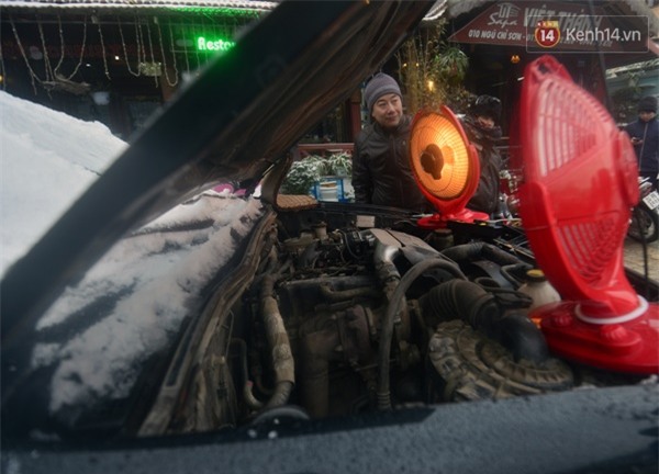 Trên dọc tuyến đường QL4D nhiều xe khách chết máy do dầu bị đông, nhiều chiếc phải nhờ đến thợ sửa chữa hút dầu ra, hơ nóng và bơm lại bình.