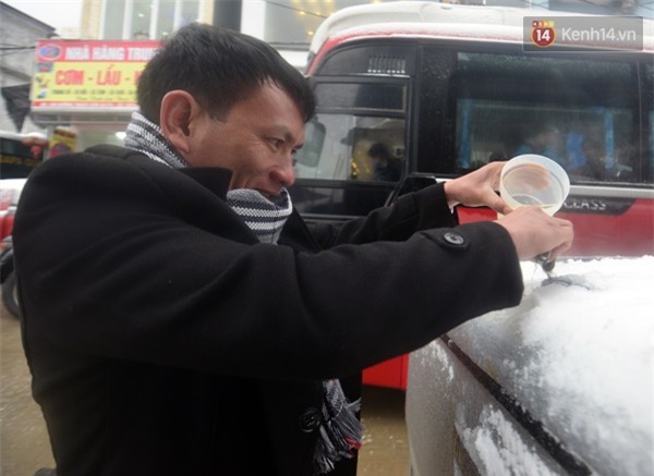 chủ phương tiện phải đổ nước nóng và phun nước để làm tan băng tuyết quanh thân xe và kính chắn gió