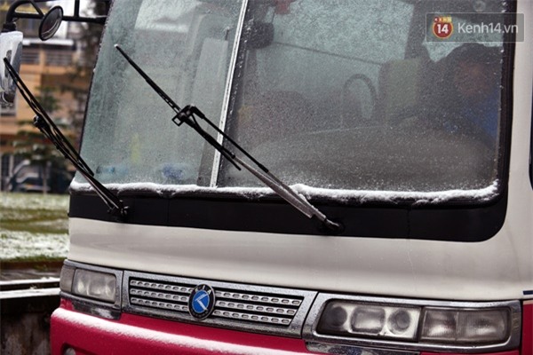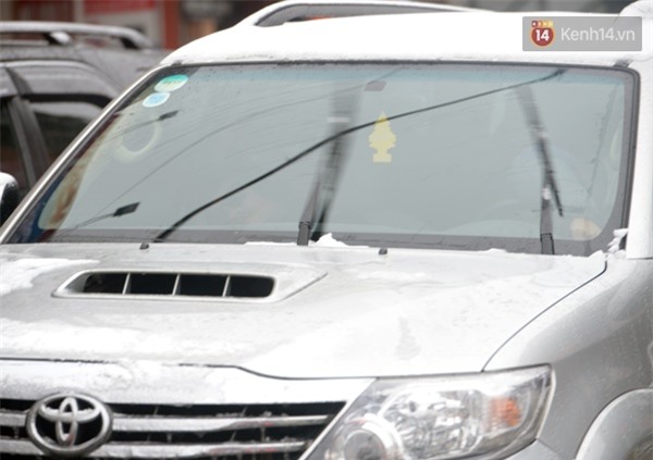Có xe do để qua đêm giữa trời, lượng băng tuyết đóng khá dày nên phải dùng chổi nhựa để cạy tuyết