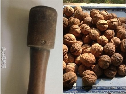 | Chiếc "chày" này thường được người đàn ông này dùng để đập hạt óc chó. |