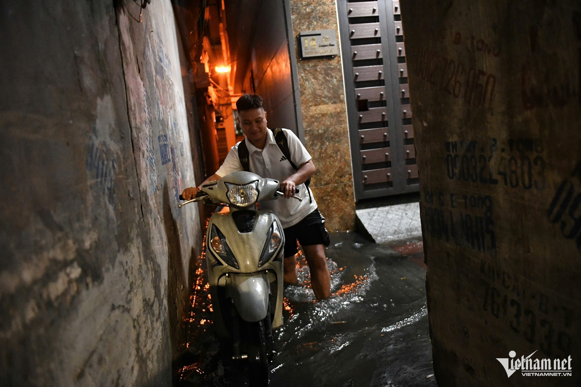 Trong ngõ, điểm ngập thấp nhất chừng 20cm, điểm nặng nhất khoảng 80cm.