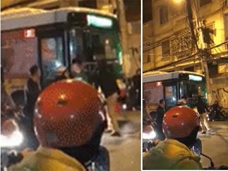 Người đàn ông chặn đường, dùng mũ bảo hiểm đập kính xe buýt sau va chạm giao thông