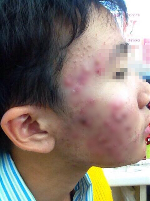 Sau khi dùng mỹ phẩm không rõ nguồn gốc được rao bán trên mạng, chàng trai người Thái Lan đã vô cùng đau đớn khi gương mặt gần như bị hủy hoại với những nốt mụn chi chít.