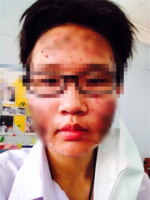Ngay sau khi sử dụng loại kem này, chàng trai đã bị dị ứng, khiến gương mặt bắt đầu nổi mụn chi chít. Càng ngày, gương mặt của chàng trai càng biến dạng nghiêm trọng khi toàn bộ gương mặt của anh chàng sưng tấy, đỏ ửng và thậm chí là bong tróc vô cùng đáng sợ. Hiện, chàng trai đang phải tìm đến bệnh viện để điều trị với mong muốn lấy lại được làn da và gương mặt sạch mụn như xưa.