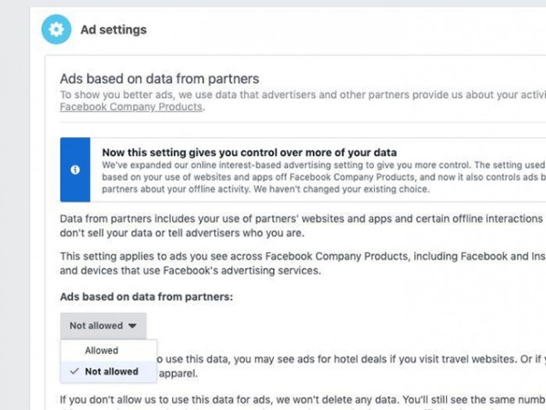 Người dùng có thể thoát khỏi hoạt động theo dõi của Facebook bằng cách vào Cài đặt, chọn Quảng cáo và không cho phép “quảng cáo dựa trên dữ liệu từ đối tác”.