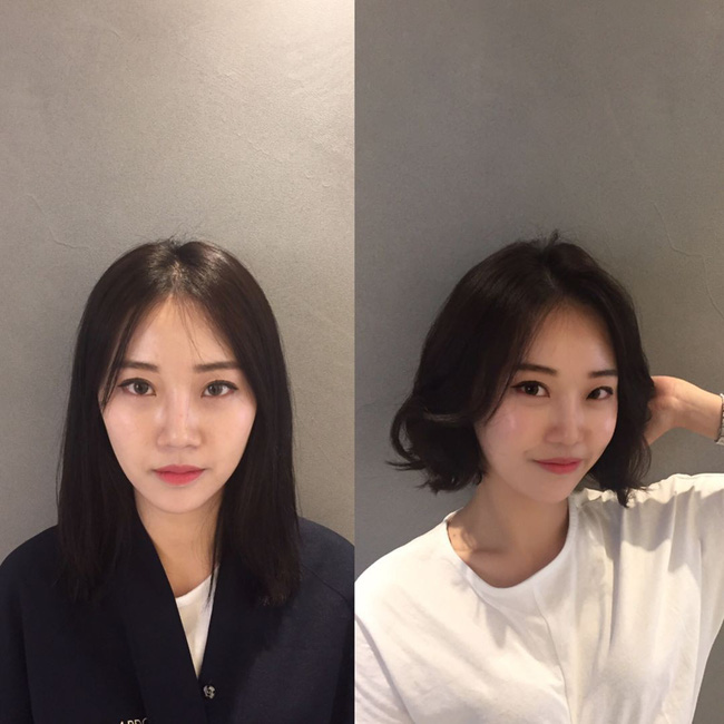 Quyết định cắt phăng mái tóc dài ngang eo có lẽ là quyết định đúng đắn nhất với cô gái này. Rõ ràng là, khi để tóc longbob rồi sấy phồng lên đôi chút, cô trẻ hẳn 5 tuổi và cũng xinh xắn hơn nhiều.