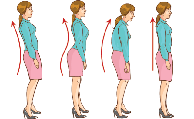 Tư thế đi đứng chuẩn chính là ngực hơi ưỡn, hóp bụng và thẳng lưng.