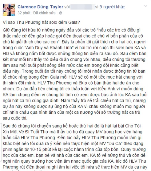Ngay sau đó, anh Dũng Taylor đã xóa dòng chia sẻ dài này trên facebook cá nhân của mình.