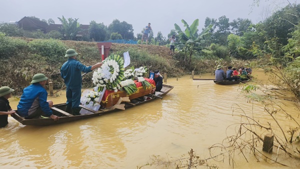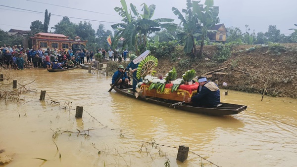 Một người dân trú cùng thôn D. cho hay: "Từ nhà bố mẹ của D. ra nghĩa trang khoảng 500m và có đường bê tông ra tận nơi. Tuy nhiên, do nước lũ rút chậm nên đường ra nghĩa trang vẫn đang bị ngập sâu. Người dân cùng lực lượng xã đã huy động khoảng 10 chiếc thuyền nhỏ để chở quan tài và người thân vượt lũ khoảng 300m mới đến được đất nghĩa trang, đưa em về nơi an nghỉ cuối cùng".