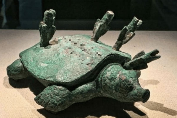 Bức tranh được khảm từ nhiều viên đá màu tím và đỏ, những món hàng mà vị hoàng đế đã phải tiêu tốn nhiều tài nguyên để nhập khẩu. (Ảnh: CBS News)