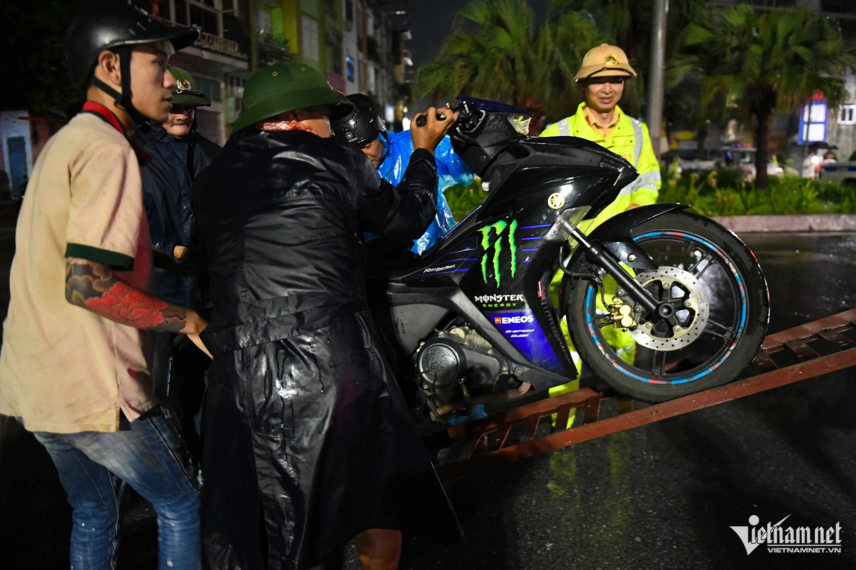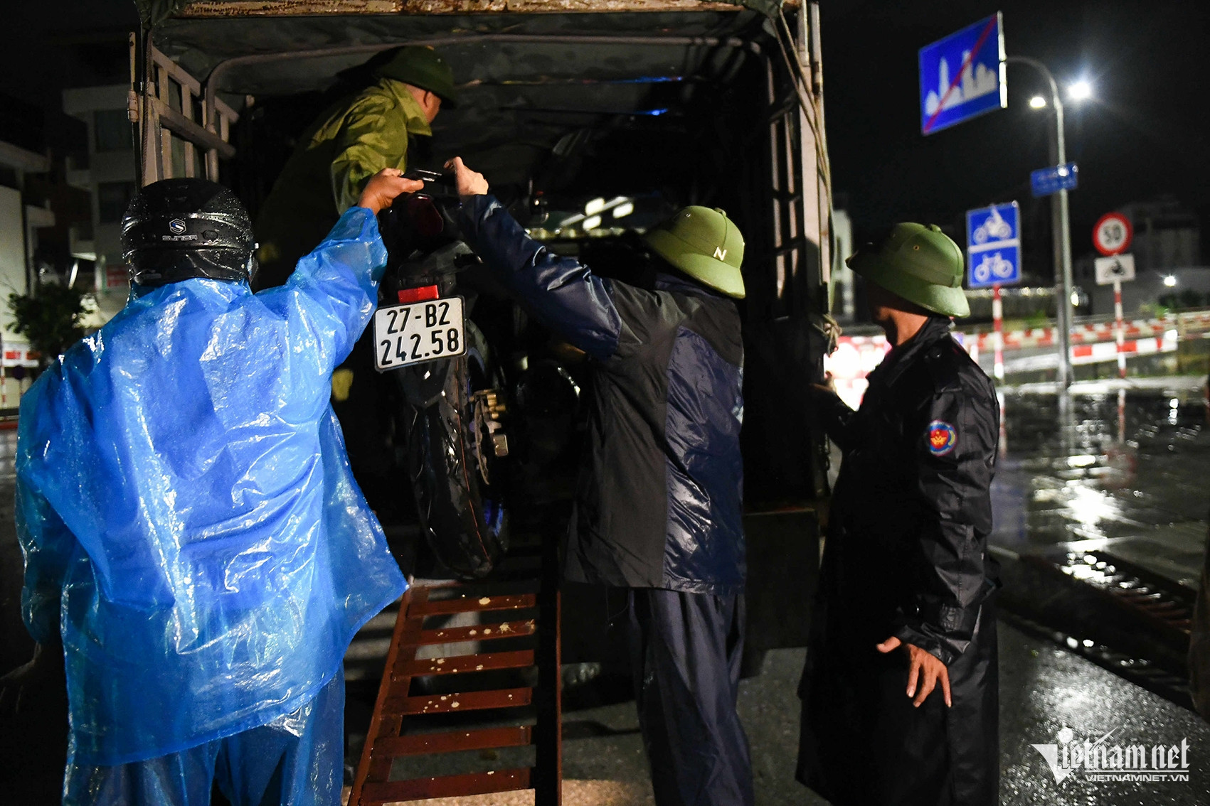 Ghi nhận vào 23h30 đêm 21/7, nhiều người dân di chuyển bằng xe máy đã được lực lượng chức năng hỗ trợ qua cầu Bãi Cháy.