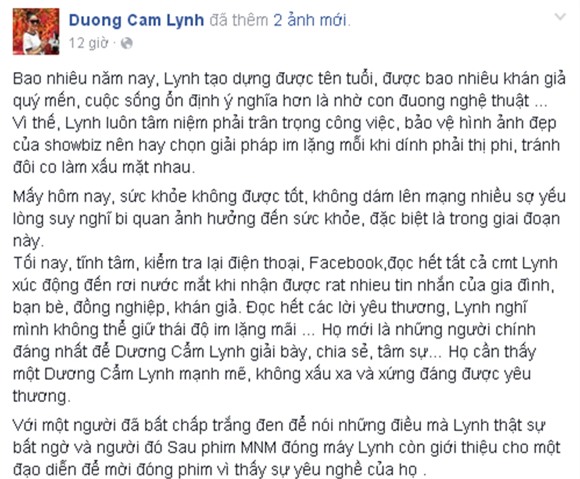 Nguyên văn tâm thư dài của Dương Cẩm Lynh trên trang cá nhân mới đây: