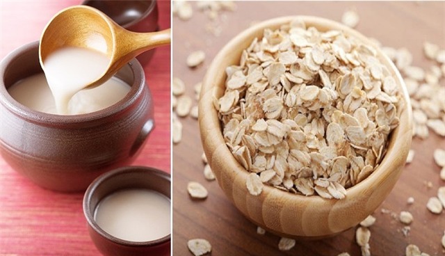 Nguyên liệu: 2 thìa rượu gạo, 1 thìa bột yến mạch.