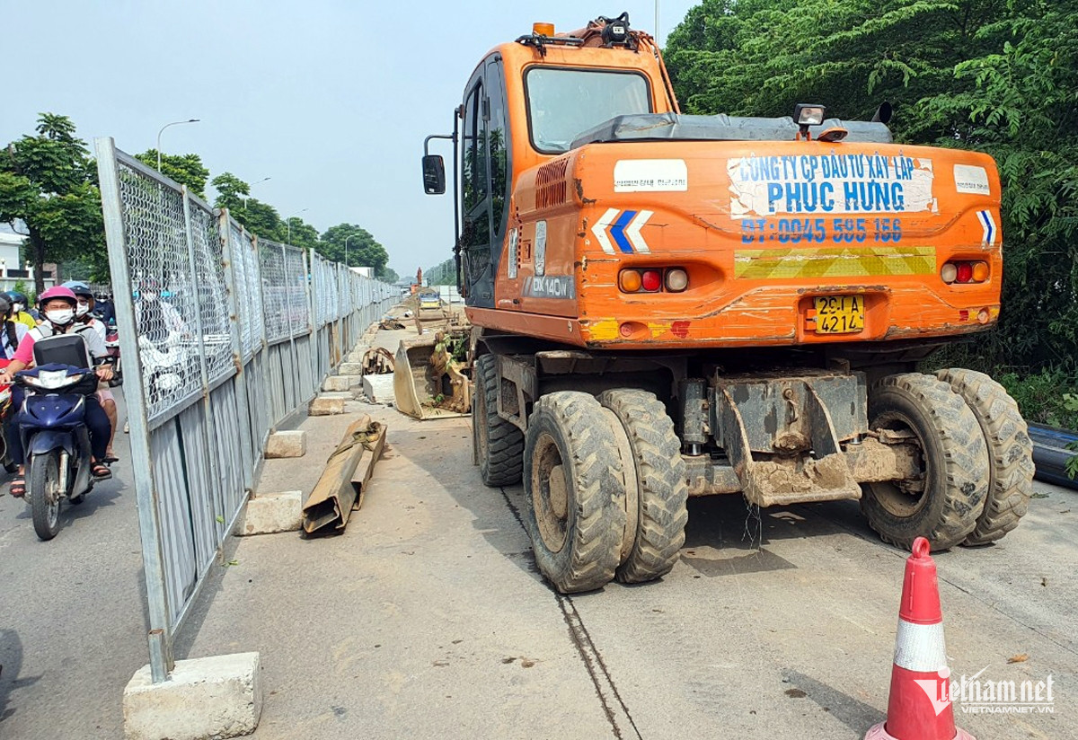 Theo tìm hiểu, gần 1 tháng qua, đường gom Đại lộ Thăng Long đoạn gần ngã ba đường Sa Đôi, các đơn vị thi công đã rào chắn, đào đường lắp ống cấp nước. Việc rào chắn, đào đường đã khiến nhiều điểm trở thành nút thắt gây khó khăn cho các phương tiện di chuyển.