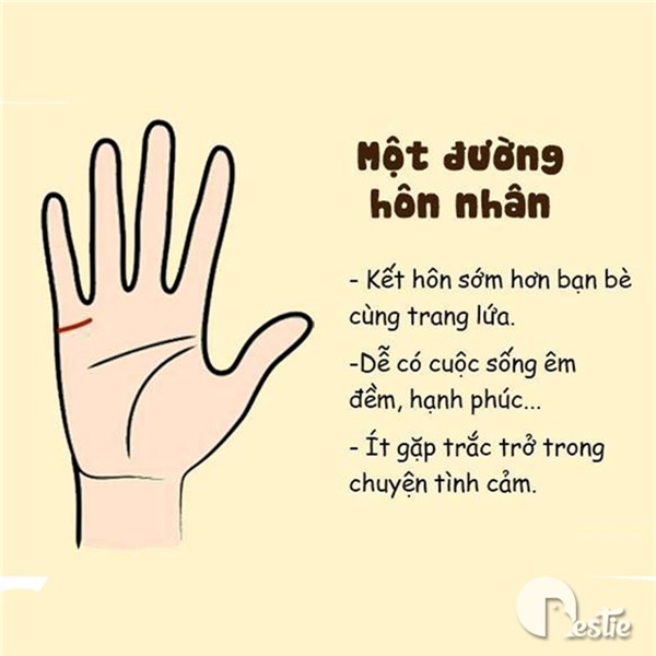 Đối với những ai chỉ có một đường hôn nhân là một điều đáng để chúc mừng. Điều này cho thấy con đường tình trường của bạn khá suôn sẻ, ít có trắc trở và đau khổ và đồng thời cuộc sống sau hôn nhân của bạn cũng rất êm đềm và hạnh phúc.