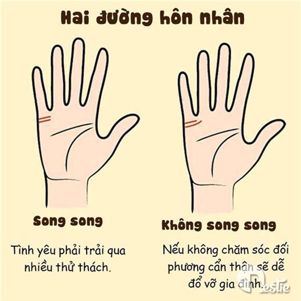 Còn nếu hai đường hôn nhân không song song nhau mà có 1 trong 2 đường hoặc cả đường đều chạy lệch là lời cảnh báo dành cho bạn. Bạn có thể có một đường tình suôn sẻ trước đó, nhưng trong hôn nhân, nếu bạn không biết vun đắp, giữ gìn thì nguy cơ đổ vỡ là rất cao.