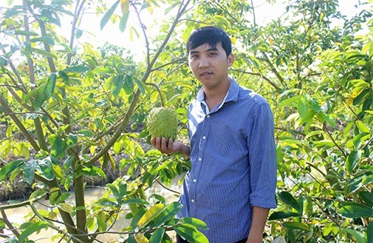 Anh Hồ Thanh Nam-con trai ông Hồ Văn Em, xã Định Thành, huyện Thoại Sơn, tỉnh An Giang giới thiệu vườn mãng cầu xiêm trồng trên đất lúa cho thu nhập cao.