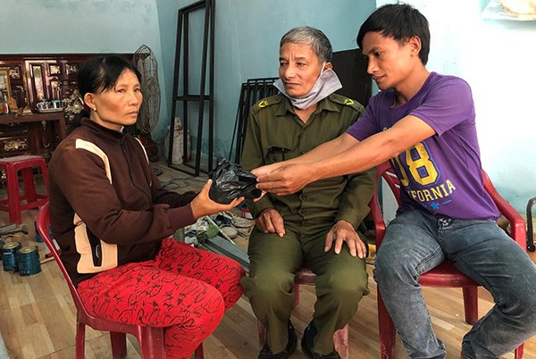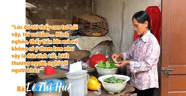 "Tôi liền nói con trai đừng mở ra, cứ đem nguyên chiếc túi đó đến nhà chú công an xã trình báo sự việc" - bà Huệ kể.