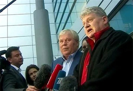 Bố của Edward Snowden (phải) có mặt tại Moscow để thăm con trai. |