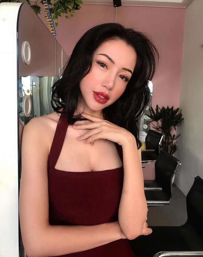 Vừa mới vướng nghi án tiêm môi với bờ môi tều mọng nước, Elly Trần chọn cách trang điểm sắc sảo đậm nét với son đậm, gương mặt đánh khối cẩn thận và đặc biệt là hàng lông mày mảnh mai sắc lẹm.