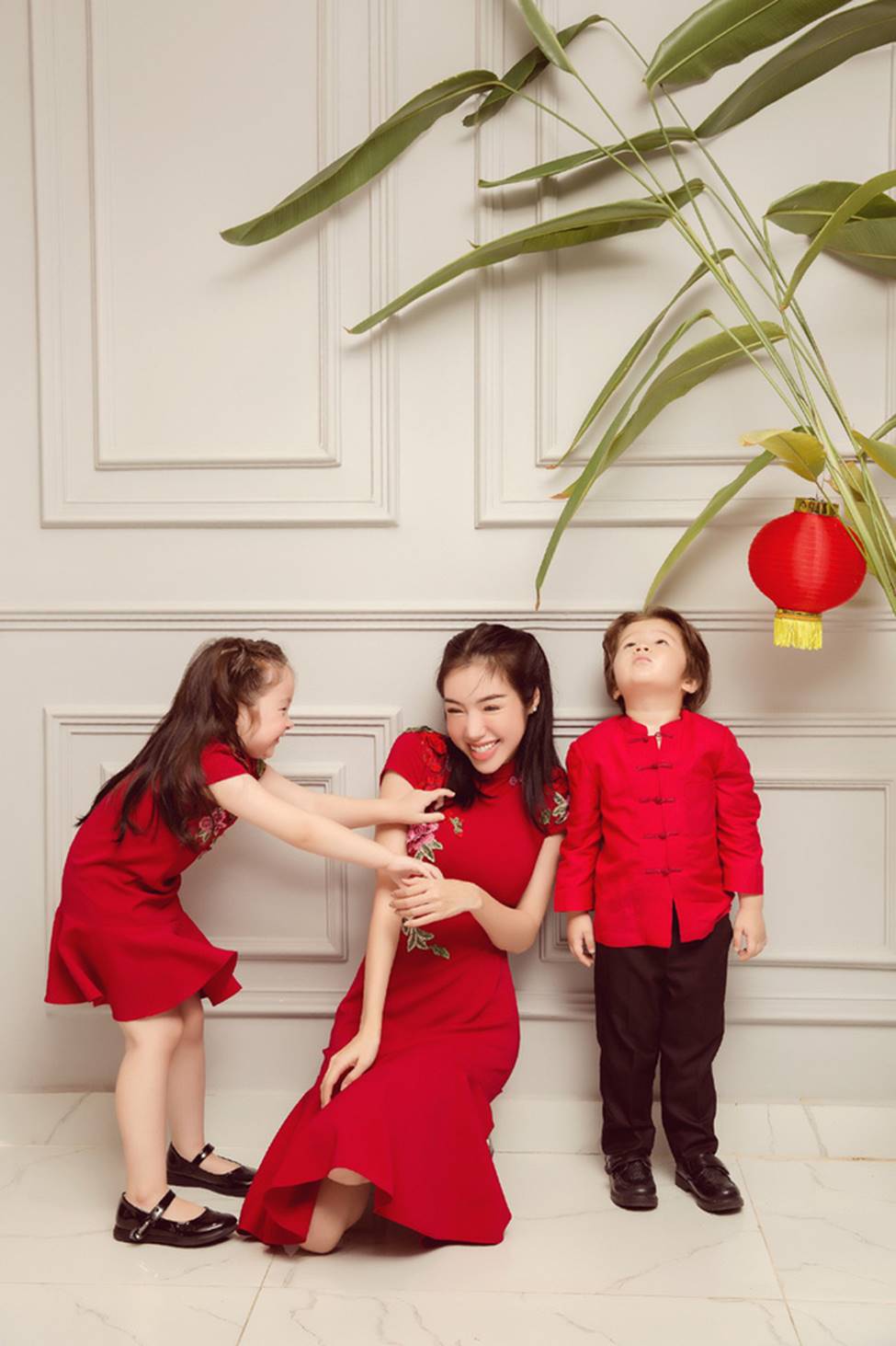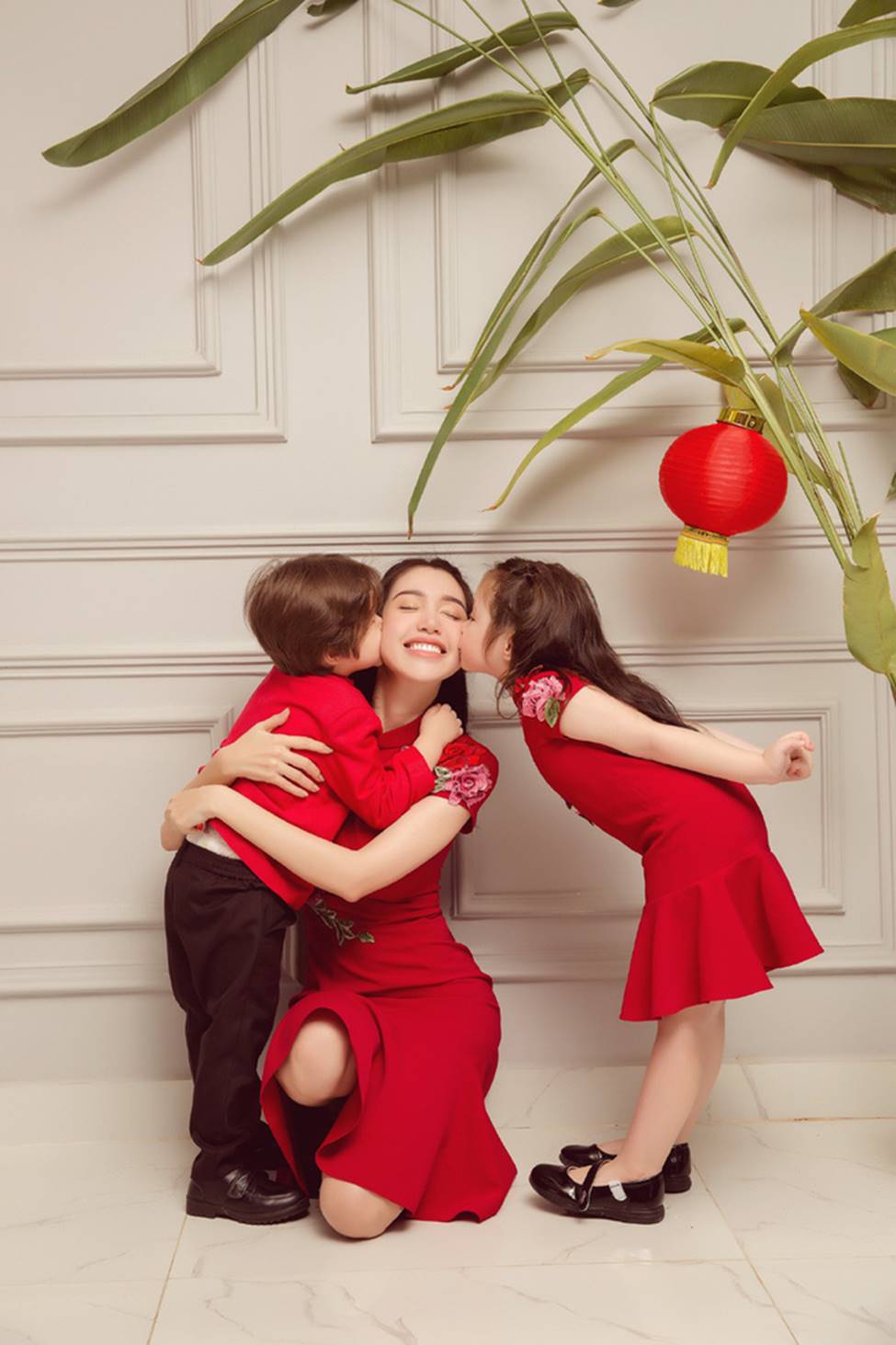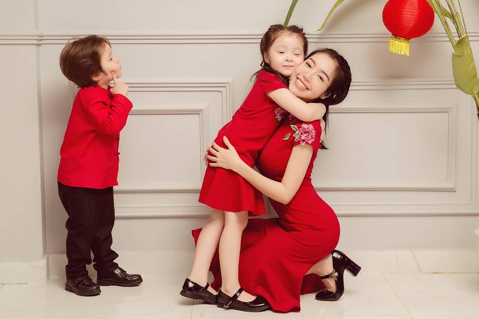 Mới đây, Elly Trần đã hạnh phúc khoe loạt ảnh đón trung thu cùng hai con cưng. Trong ảnh, cả 3 mẹ con đều diện đồ đỏ vô cùng nổi bật.