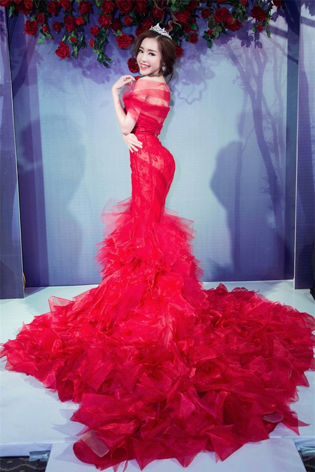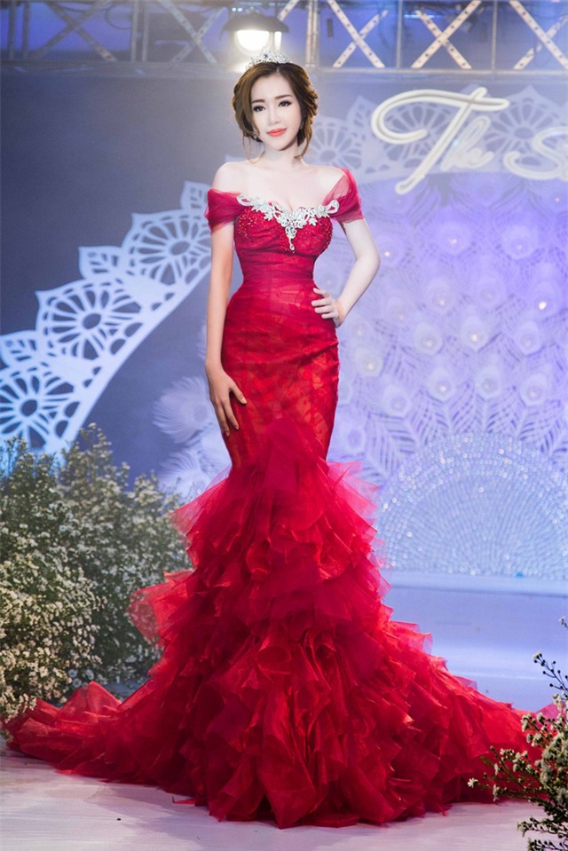 Tối qua, Elly Trần xuất hiện cùng Á Hậu Huyền My trong một sự kiện giới thiệu BST cưới tại TP.HCM, thu hút sự chú ý của mọi người. "Bà mẹ hai con" Elly Trần xuất hiện với bộ váy màu đỏ cầu kỳ, quyến rũ, ôm sát cơ thể trông rất gợi cảm.