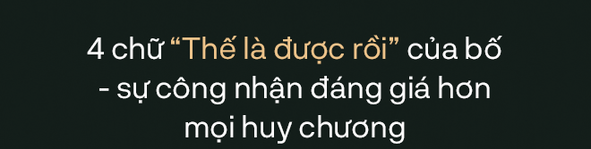 Năm 2019, tôi có một sự cố lớn trong nghề nghiệp. Bố không mắng mỏ gì, chỉ tìm đủ cách xoay xở để giúp tôi vượt qua. Nhưng tôi biết trong lòng ông không vui. Từ trước đến giờ, bố chưa bao giờ yên tâm hoàn toàn về tôi, chưa bao giờ thấy con mình “được rồi” cả. Nên hôm qua, chỉ cần một câu ấy của bố, tôi đã thấy hạnh phúc như được trao huy chương. Đó như là một sự thừa nhận của bố, rằng tôi đã làm ông yên tâm”.