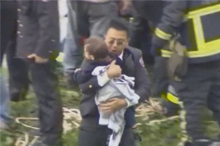 Trong những bức ảnh mới được tiết lộ, các nhân viên cứu hộ đã bế một em bé ra khỏi hiện trường vụ tai nạn. Em bé dường như không hề bị thương tích nặng nề. Em vẫn tỏ ra khỏe mạnh.