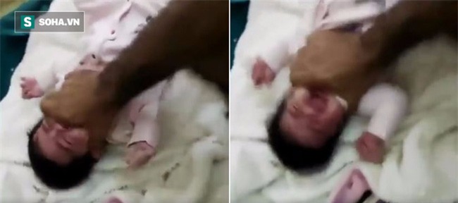 Trong đoạn video đầu tiên, có thể thấy một người đàn ông với bàn tay to lớn ra sức tát, bịt mồm bịt mũi đứa trẻ lắc mạnh khiến cho em bé khóc tím tái mặt mày. Không chỉ có vậy, hắn ta còn cho em bé ăn sữa pha Pepsi và hút thuốc ngay trước mặt đứa trẻ.