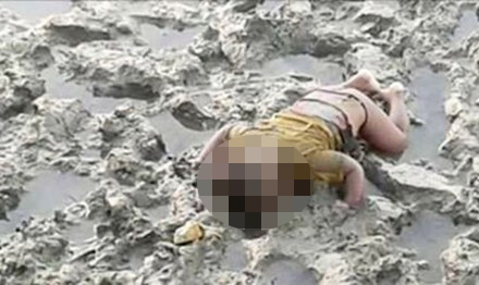 Cậu bé Mohammed Shohayet, 16 tháng tuổi, chết úp mặt xuống bùn