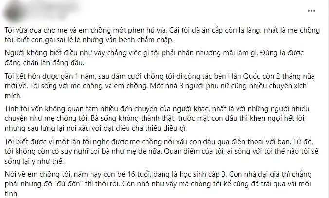 Em chồng ăn cắp vẫn già mồm, thấy bằng chứng mới quỳ gối van xin-1 Bài chia sẻ (Ảnh chụp màn hình)