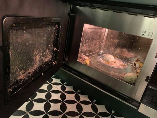 Quả thực những quả trứng mà cô em chồng đang chờ chị dâu chế biến đã nổ tung trong lò, mỗi góc bám một ít trứng bắn ra, trông vừa bẩn và nhếch nhác. Chỉ cần nhìn kết quả và hình ảnh cô gái đang ngồi nhặt từng vụn trứng để thu dọn cũng đủ khiến dân mạng cười rũ rượi, tiếp đó là cơn mưa bình luận vô cùng hài hước dành cho bà chị dâu chiều em chồng nhất "hệ mặt trời":
