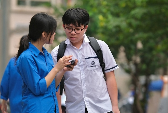 Sáng nay (9/6), tại điểm thi trường THPT chuyên Hà Nội - Amsterdam, nhiều người không khỏi xúc động trước hình ảnh một cô bé lớp 2 đứng chờ anh trai ngoài cổng trường, ánh mắt dõi theo đầy mong ngóng. Đó là em gái của thí sinh Nguyễn Mạnh Đức, trường THCS Dịch Vọng Hậu, quận Cầu Giấy.