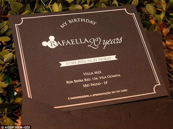 tuổi 20 sớm tới 4 ngày (hôm 7/3 vừa qua). Tấm thiệp mời dự sinh nhật của Rafaella được thiết kế rất sang trọng.