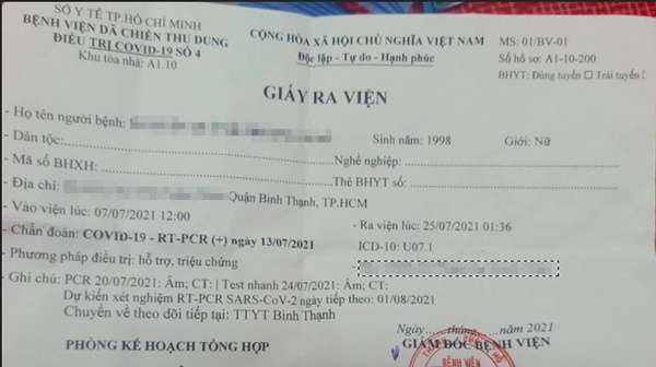 Phúc Âm (23 tuổi, tại quận Bình Thạnh, TP HCM), sau 30 ngày điều trị COVID-19, đã được bệnh viện cho về nhà tự cách ly.