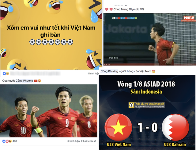 "Cú sút đẳng cấp của Công Phượng đã đưa Olympic Việt Nam lần đầu tiên vào vòng tứ kết một kỳ Asiad". Một tài khoản trên Facebook chia sẻ.