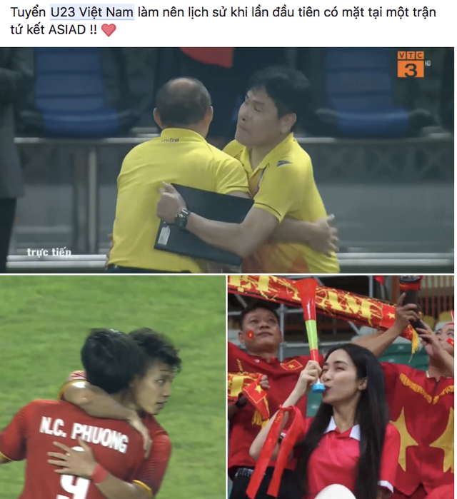 Nhiều tài khoản chia sẻ niềm vui sướng khi Việt Nam lần đầu tiên vào tứ kết giải đấu Asiad 2018
