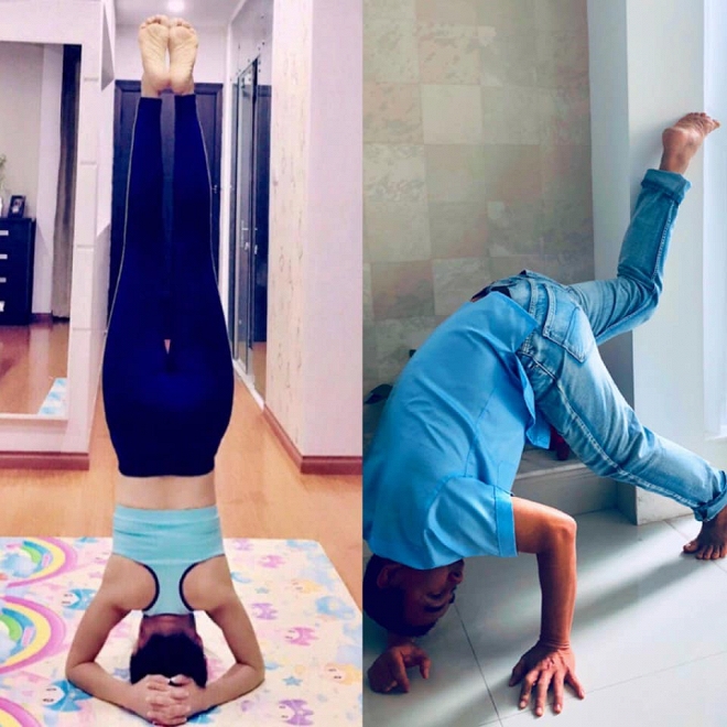 Hàng loạt người hâm mộ bình luận về hình ảnh tập yoga của vợ chồng Quyền Linh.