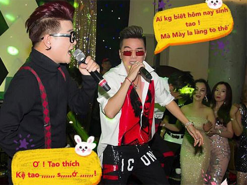Đàm Vĩnh Hưng ngồi cạnh liền tự hào: “Tao là ca sĩ quốc dân nó phải thế. Nghe nhạc mày chắc hết đói à?”.