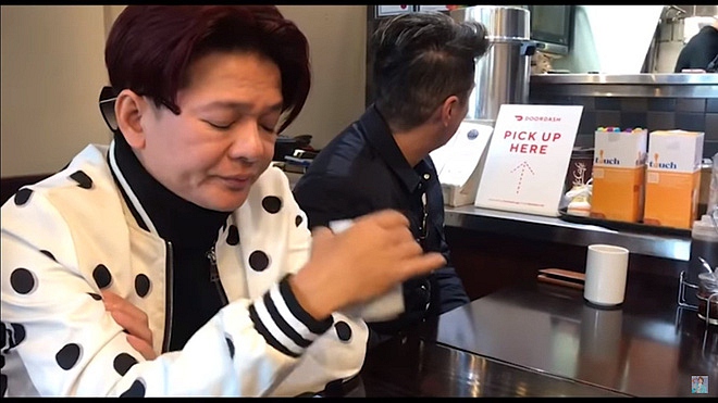 Một lúc sau, cả hai cùng vào quán ăn. Lúc này, Vũ Hà còn chán nản hơn và nói: “Tôi buồn lắm, đi cả tiếng đồng hồ trong xe nó hành tôi bằng nhạc Đàm Vĩnh Hưng rồi, đến giờ vào quán ăn nó cũng bật nhạc Đàm Vĩnh Hưng, não ruột”.