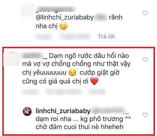 Đáp lại, Linh Chi tiết lộ cô và Lâm Vinh Hải đã làm lễ dạm ngõ. Điều này khiến không ít người ngỡ ngàng bởi trước đó, cả hai chưa từng nhắc tới kế hoạch này mà chỉ coi nhau là tri kỷ.